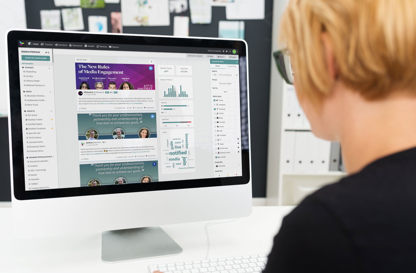 Listen uncovers the relevant mentions and information you need. Easily curate mentions of interest into custom reports to share with executives and clients, instantly publish top earned media content to your online newsroom and discover the most active journalists writing about your search terms and keywords for better media outreach.